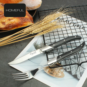 Juego de cuchillo y tenedor para carne Laguiole de alta calidad con mango de madera Pakka Cubiertos Material de metal ecológico